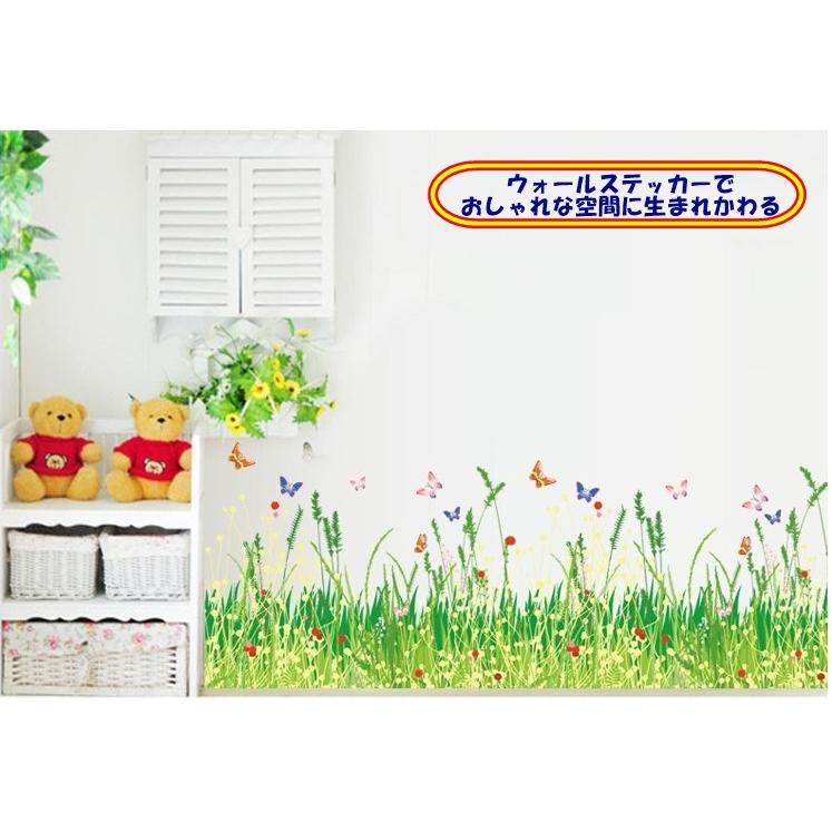 ウォールステッカー シール 壁紙 おしゃれ 賃貸ok Diy 春の平原 花 緑 植物 グリーン 蝶々 Shisha1malaysia